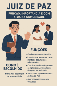 Por ser um cargo muitas vezes exercido por pessoas conhecidas e respeitadas na comunidade, o Juiz de Paz tem papel importante na mediação de conflitos, ajudando a resolver questões de forma rápida e harmoniosa. Sua presença reduz a burocracia e aproxima os serviços judiciais da população.
