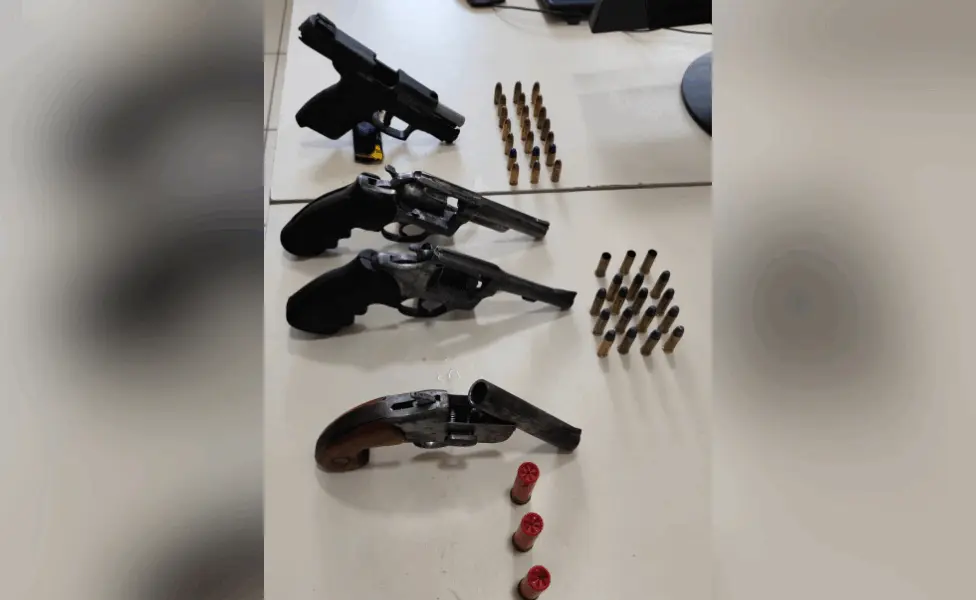 De acordo com as informações recebidas pelo ac24horas, uma viatura de policiamento ambiental da Polícia Militar fazia patrulhamento na região da Volta Seca, qual abordou três jovens em atitude suspeita, encontrando com eles uma pistola e três revólveres. Os infratores foram levados à delegacia de Polícia Civil para os devidos procedimentos.