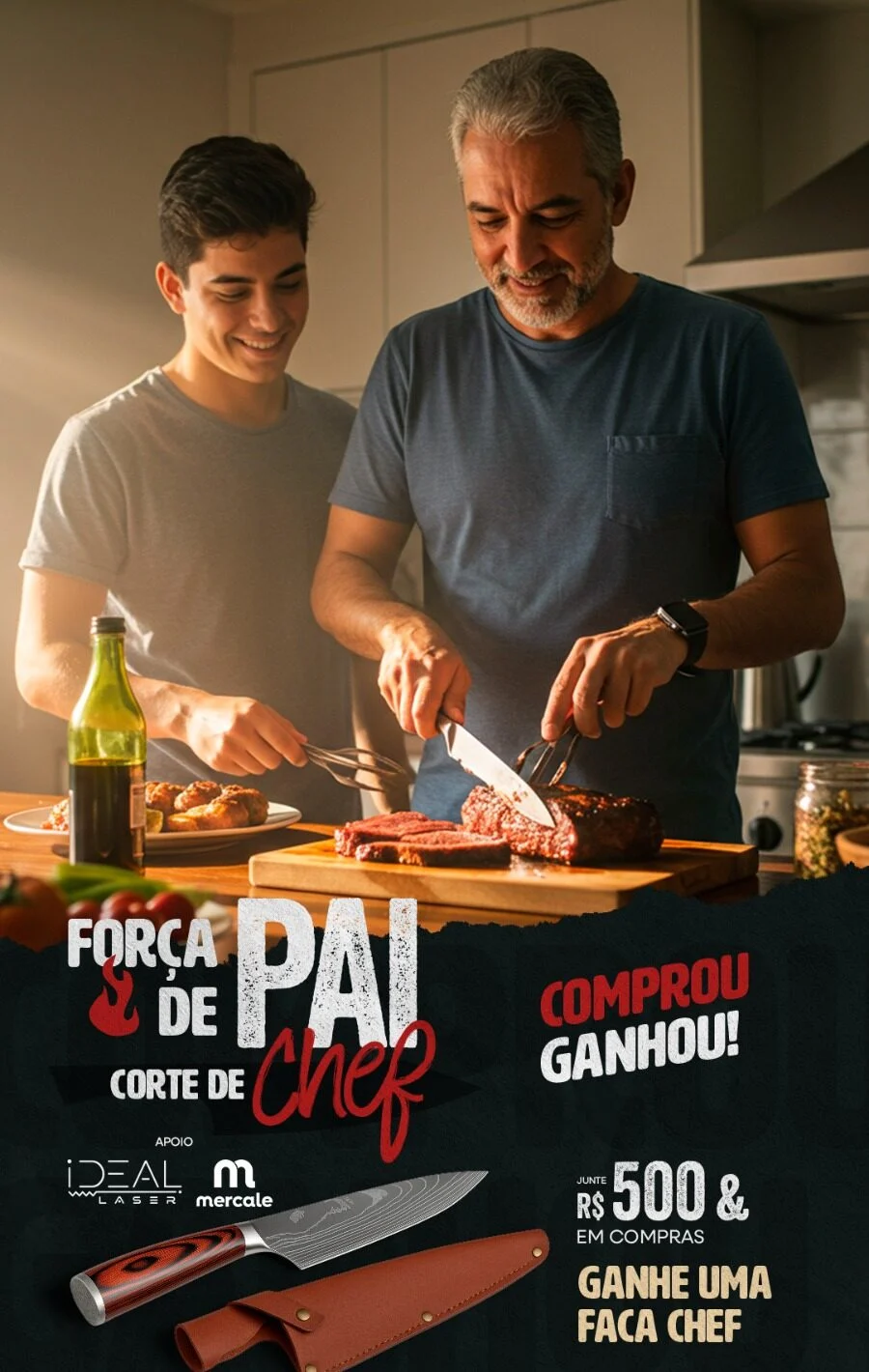 Entre os dias 1º e 10 de agosto, os clientes que acumularem R$ 500 em compras poderão trocar as notas por uma faca de chef exclusiva com o logo do shopping, um presente ideal para o dia a dia e perfeito para pais que gostam de cozinhar.